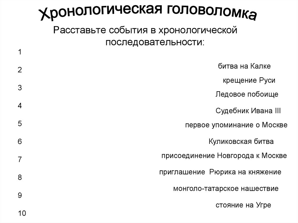 Расставьте события в хронологическойпоследовательности:
