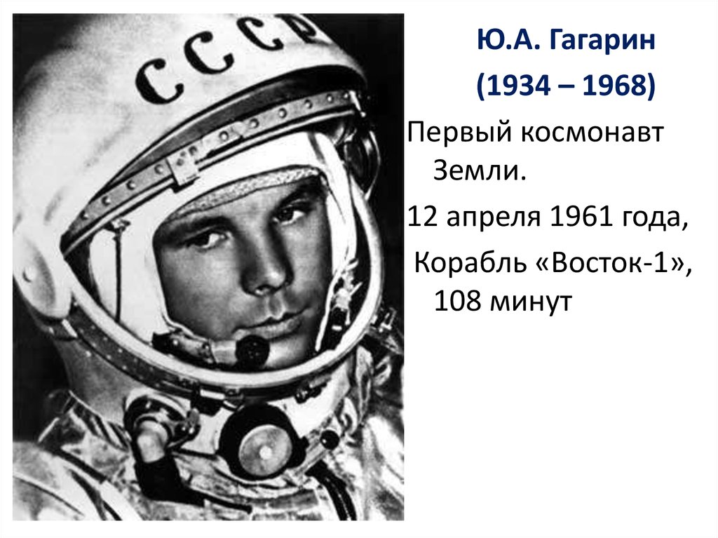 Ю.А. Гагарин(1934 – 1968)