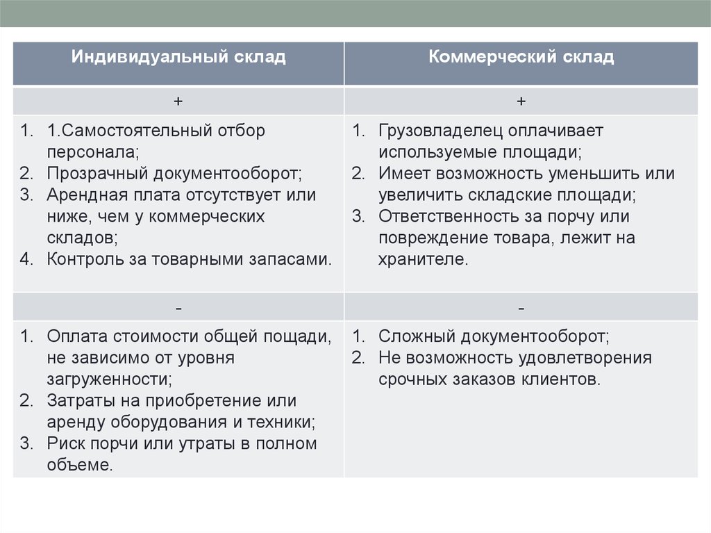 1. Собственный склад:• стабильный и высокий уровень товарооборота
