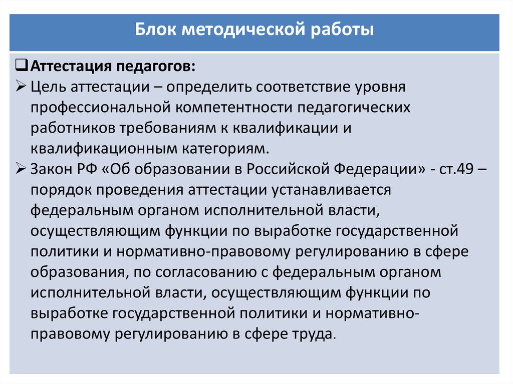 Блок методической работыАттестация педагогов: