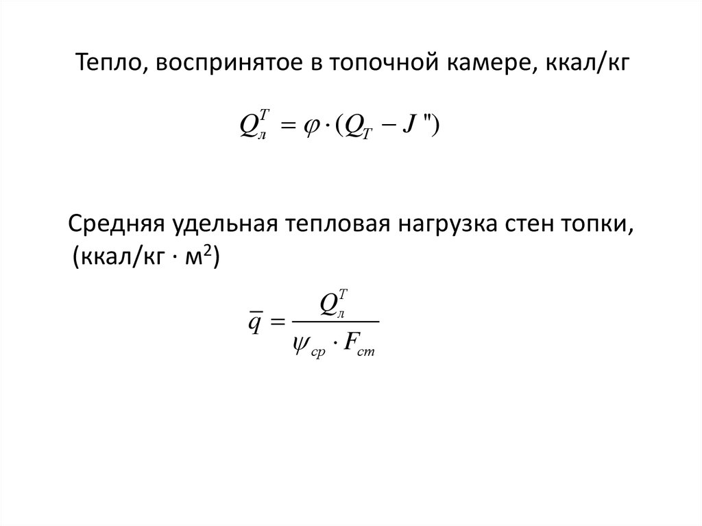 Тепло, воспринятое в топочной камере, ккал/кгQ (QT J '')