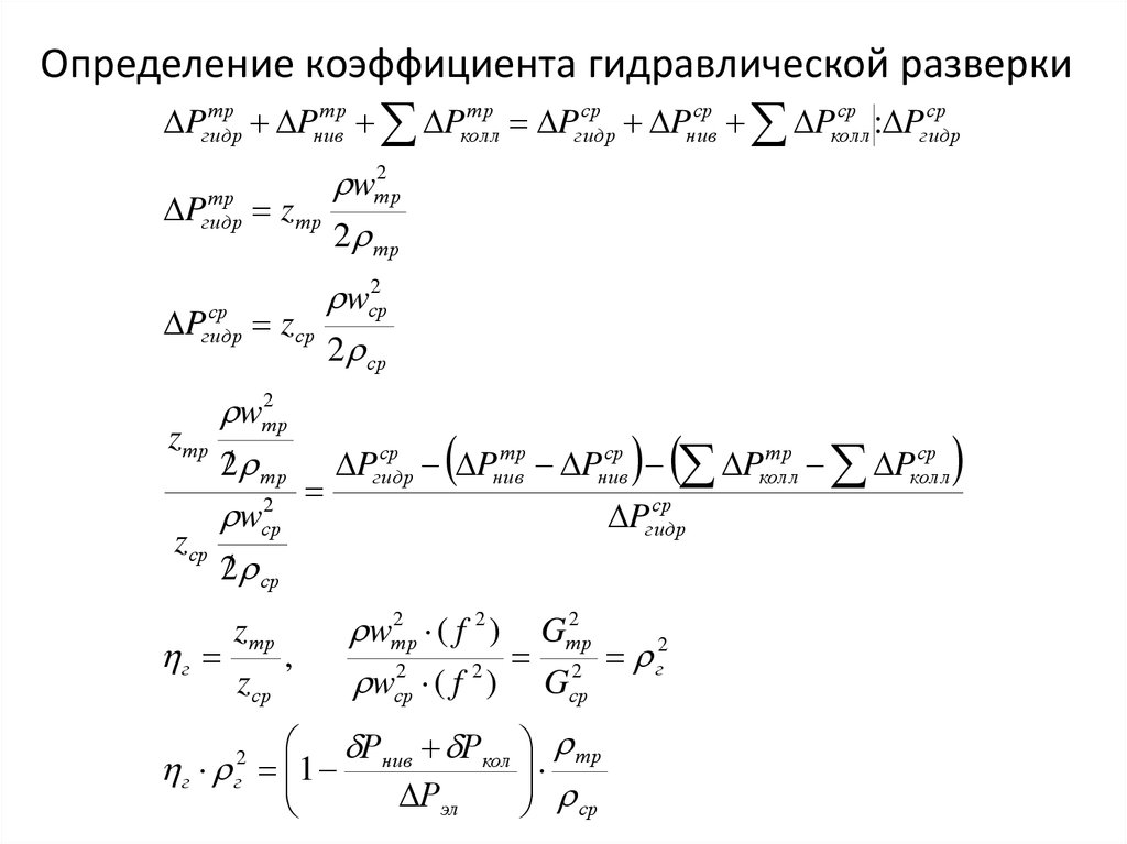 Определение коэффициента гидравлической разверкиРнив Ркол тр