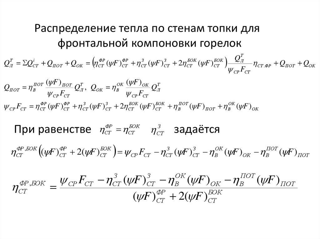 Распределение тепла по стенам топки для
