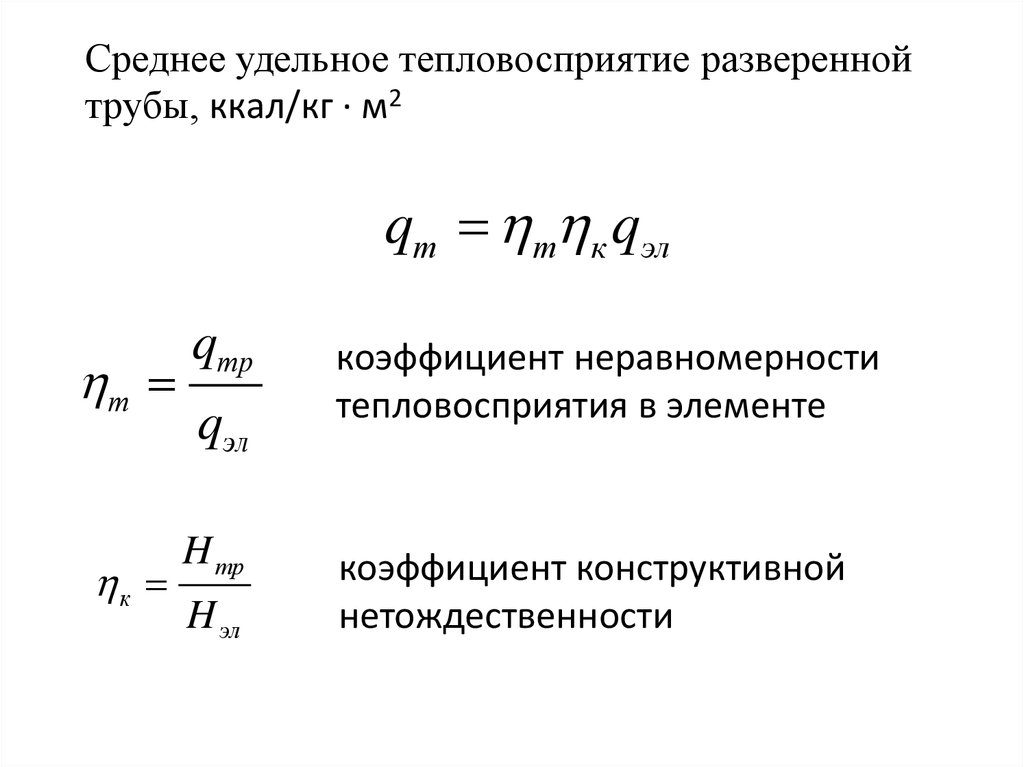 Среднее удельное тепловосприятие развереннойтрубы, ккал/кг ∙ м2