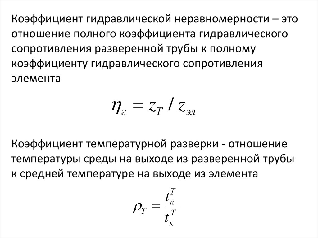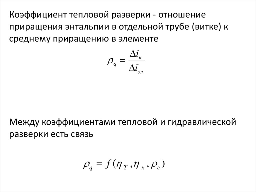 Коэффициент тепловой разверки - отношениеприращения энтальпии в отдельной трубе (витке) к
