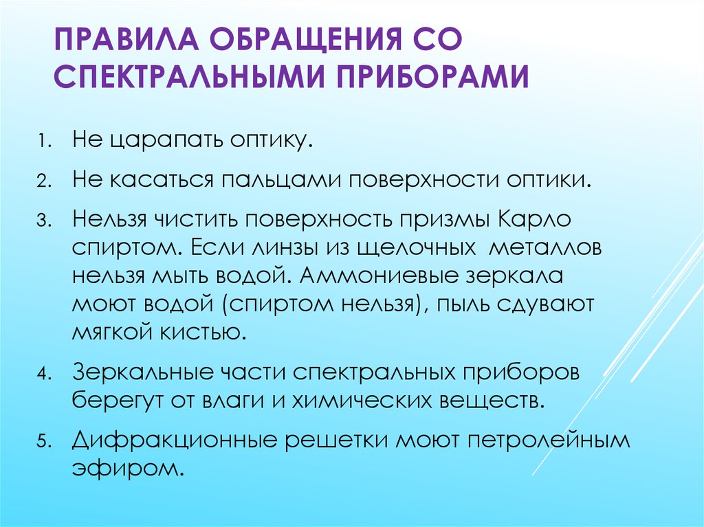 12. Правила обращения со спектральными приборами