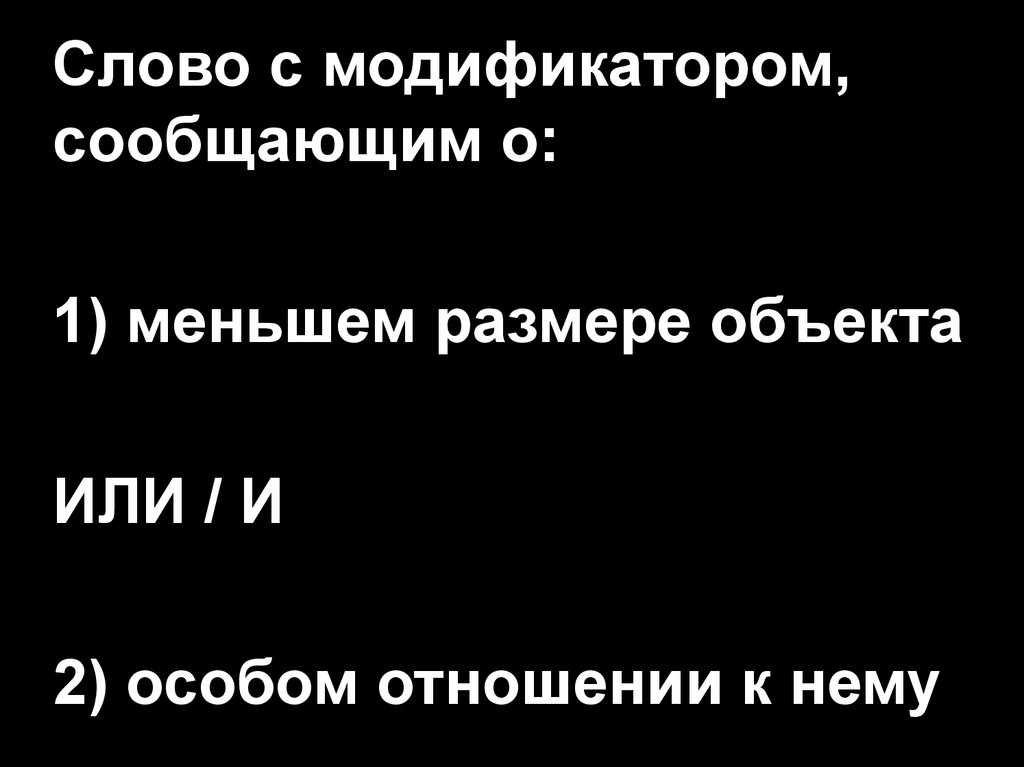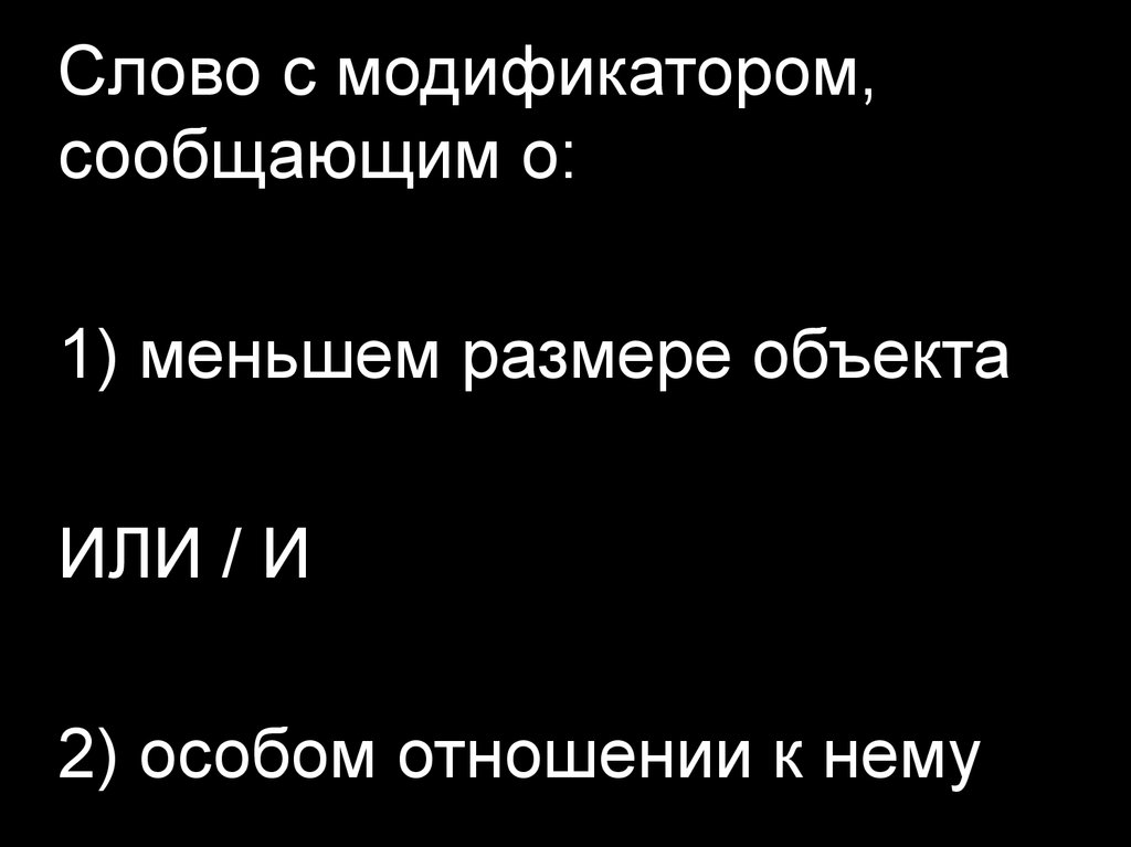 Слово с модификатором,сообщающим о: