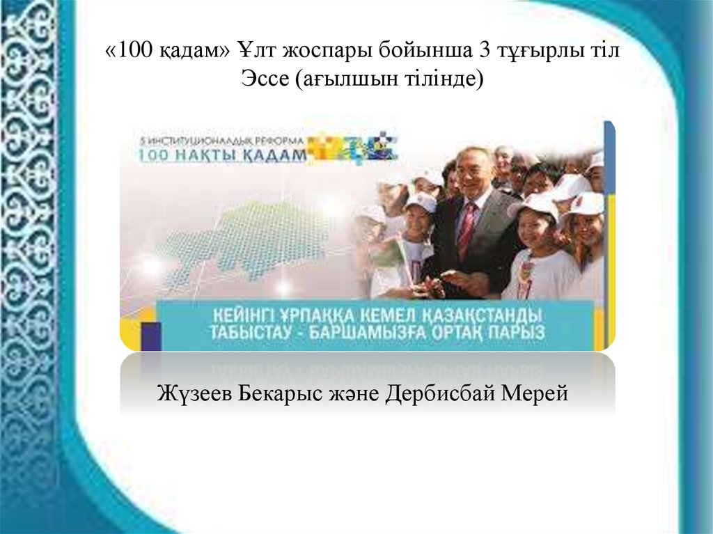 «100 қадам» Ұлт жоспары бойынша 3 тұғырлы тілЭссе (ағылшын тілінде)