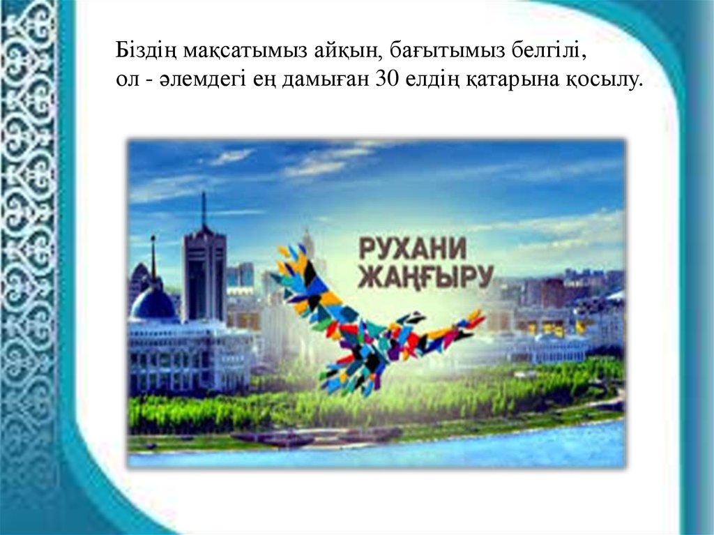 Біздің мақсатымыз айқын, бағытымыз белгілі,ол - әлемдегі ең дамыған 30 елдің қатарына қосылу.