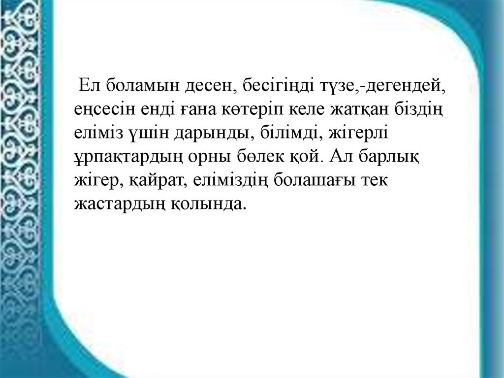 ҚорытындыӘрбір қазақ жастары өздерін ұлтжандымын деп ұғынып,өн