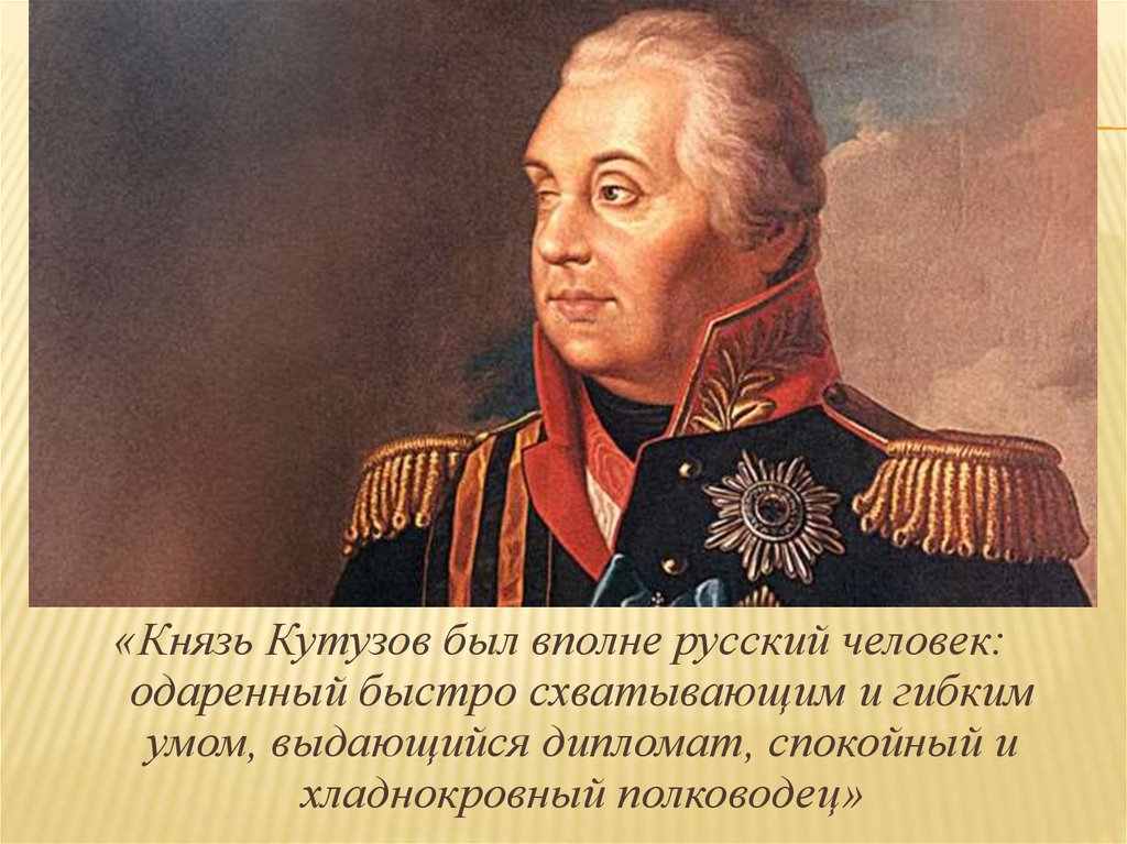 «Князь Кутузов был вполне русский человек:одаренный быстро схватывающим и гибким