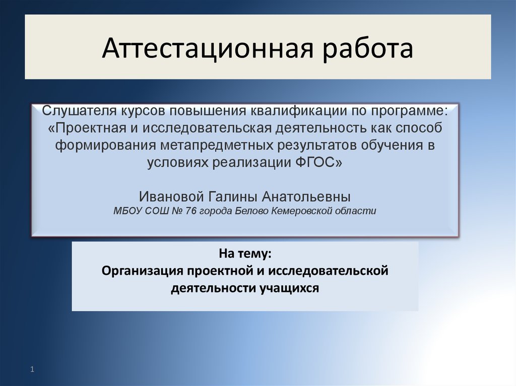 Аттестационная работа. Организация проектной и исследовательской деятельности учащихся