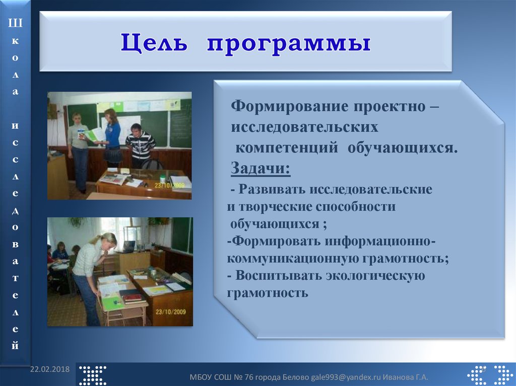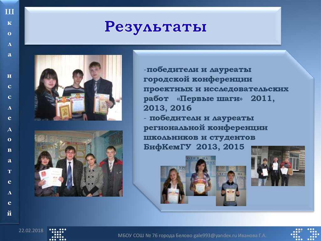 МБОУ СОШ № 76 города Белово gale993@yandex.ru Иванова Г.А.