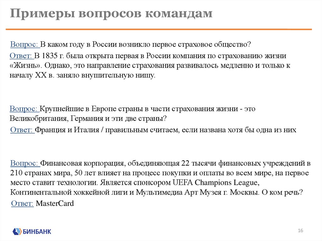 Примеры вопросов командамВопрос: В каком году в России возникло первое страховое общество?