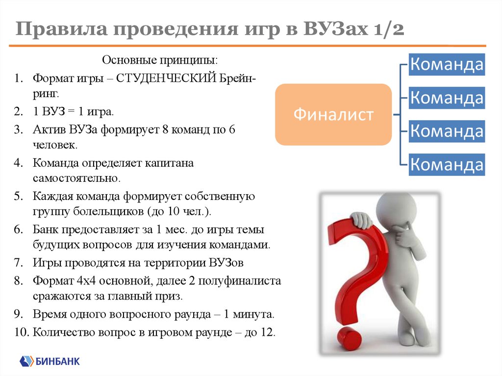 Правила проведения игр в ВУЗах 1/2Основные принципы:
