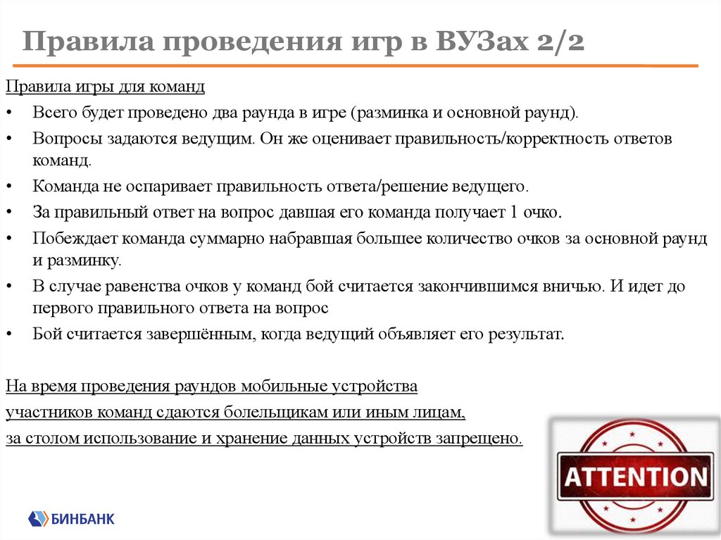 Правила проведения игр в ВУЗах 2/2Правила игры для команд