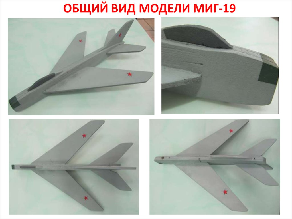 Модель является контурной копией советского самолёта МИГ-19ПМ.Изготовлена из потолочной плитки.