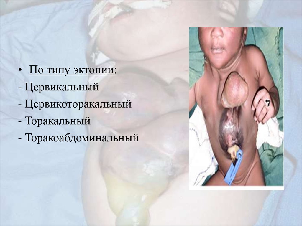 Характеризуется верхнепупочным торакоабдоминальнымдефектом передней брюшной стенки, дефектом дистального