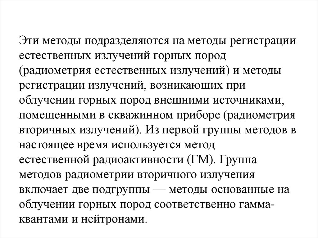 Эти методы подразделяются на методы регистрацииестественных излучений горных пород