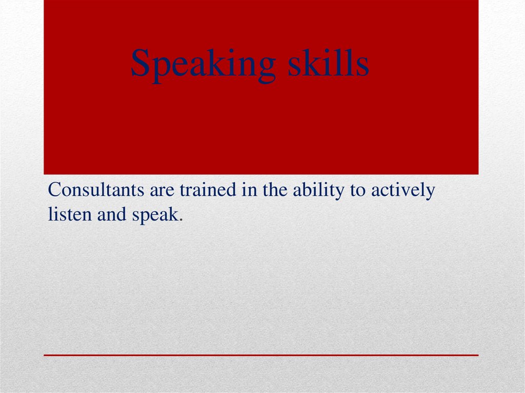Speaking skills/ Сonsultants are trained in the ability to actively listen and speak