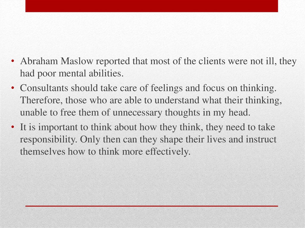 • Abraham Maslow reported that most of the clients were not ill, theyhad poor mental abilities.