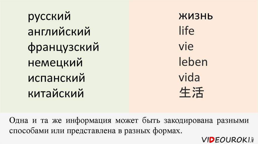 Одна и та же информация может быть закодирована разными