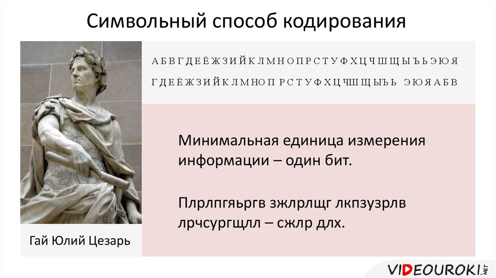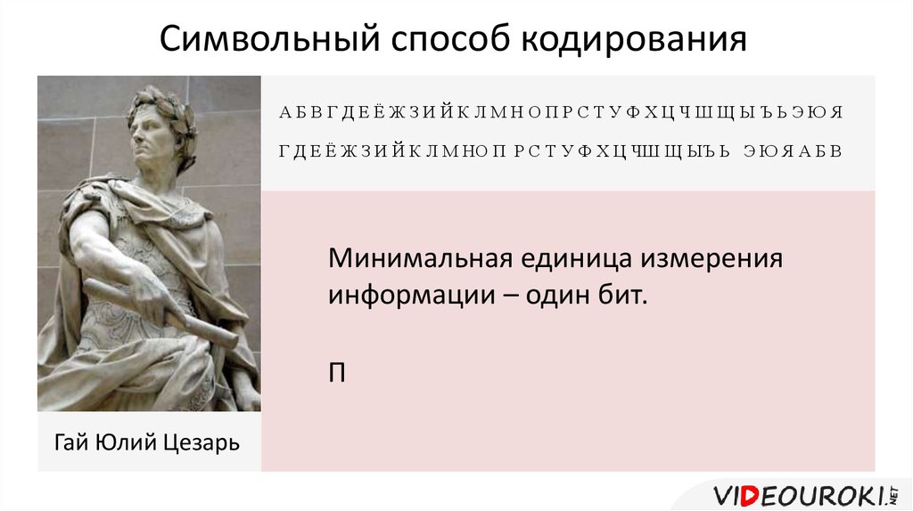 Символьный способ кодированияАБВГДЕЁЖЗИЙКЛМНОПРСТУФХЦЧШЩЫЪЬЭЮЯ