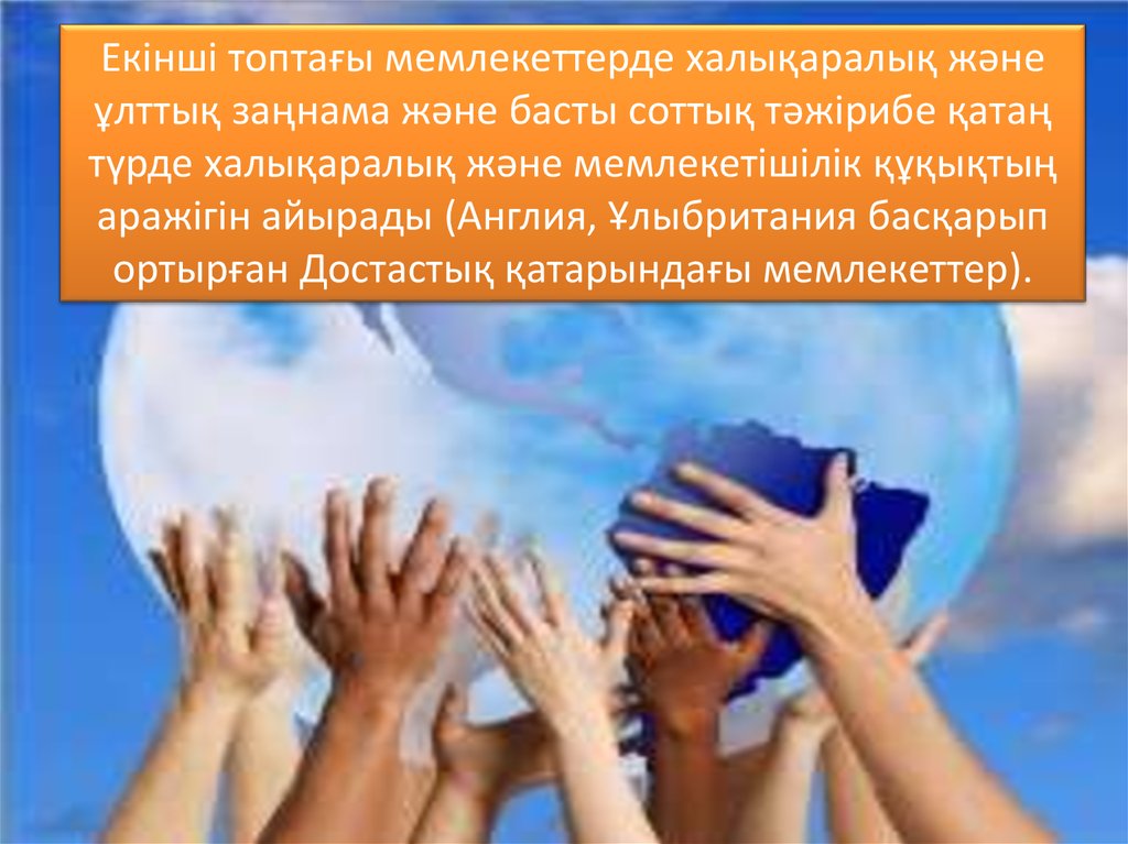 Бірінші топта халықаралық шарттарсол мемлекеттің ұлттық құқығымен