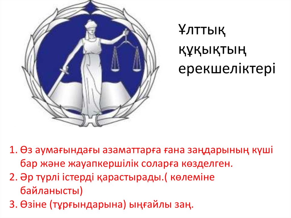 Ұлттық құқықтың халықаралық құқықпенайырмашылы мен ерекшелігі