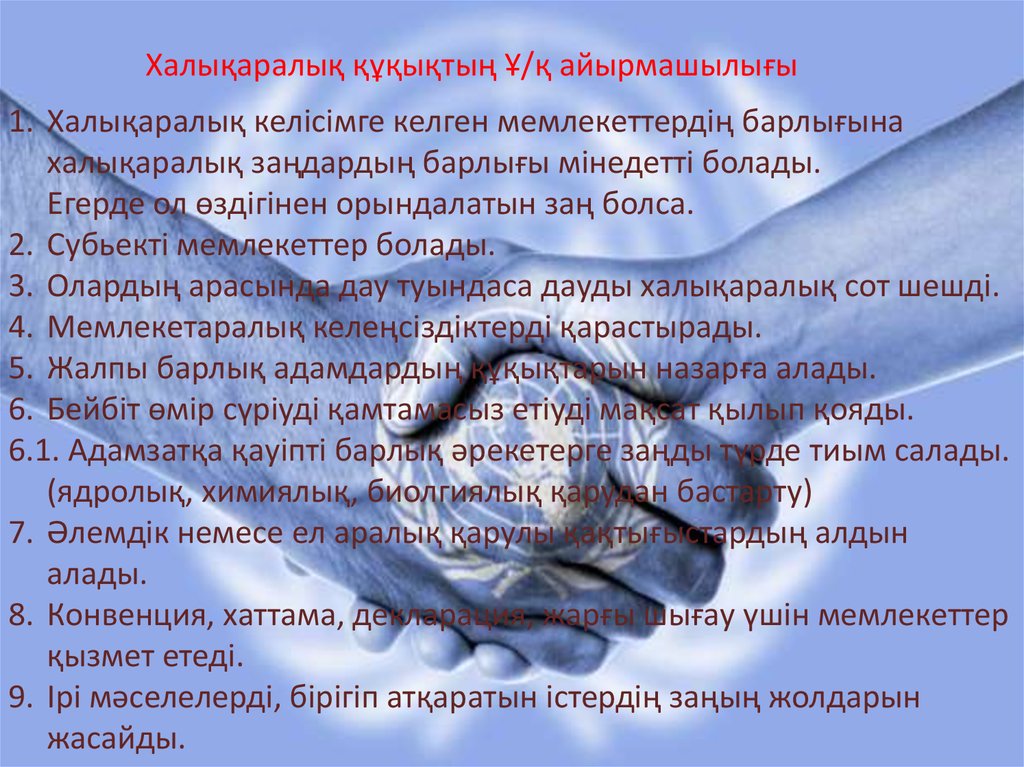 Халықаралық құқықтың Ұ/қ айырмашылығы1. Халықаралық келісімге келген мемлекеттердің барлығына