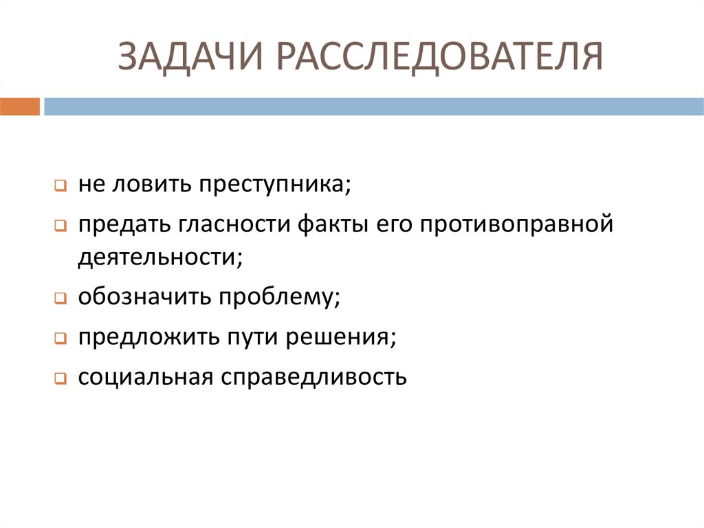 ЗАДАЧИ РАССЛЕДОВАТЕЛЯне ловить преступника;