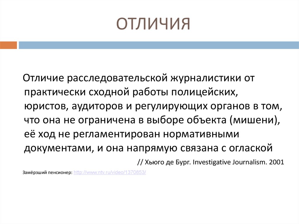 ОТЛИЧИЯОтличие расследовательской журналистики от