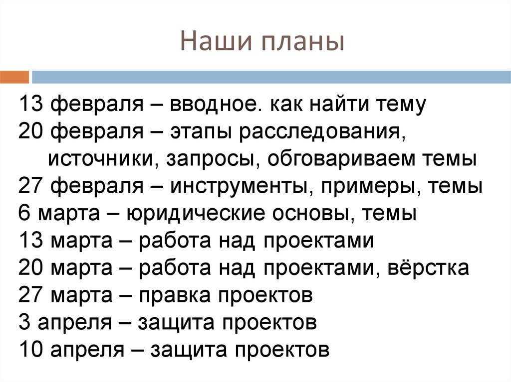 Наши планы13 февраля – вводное. как найти тему