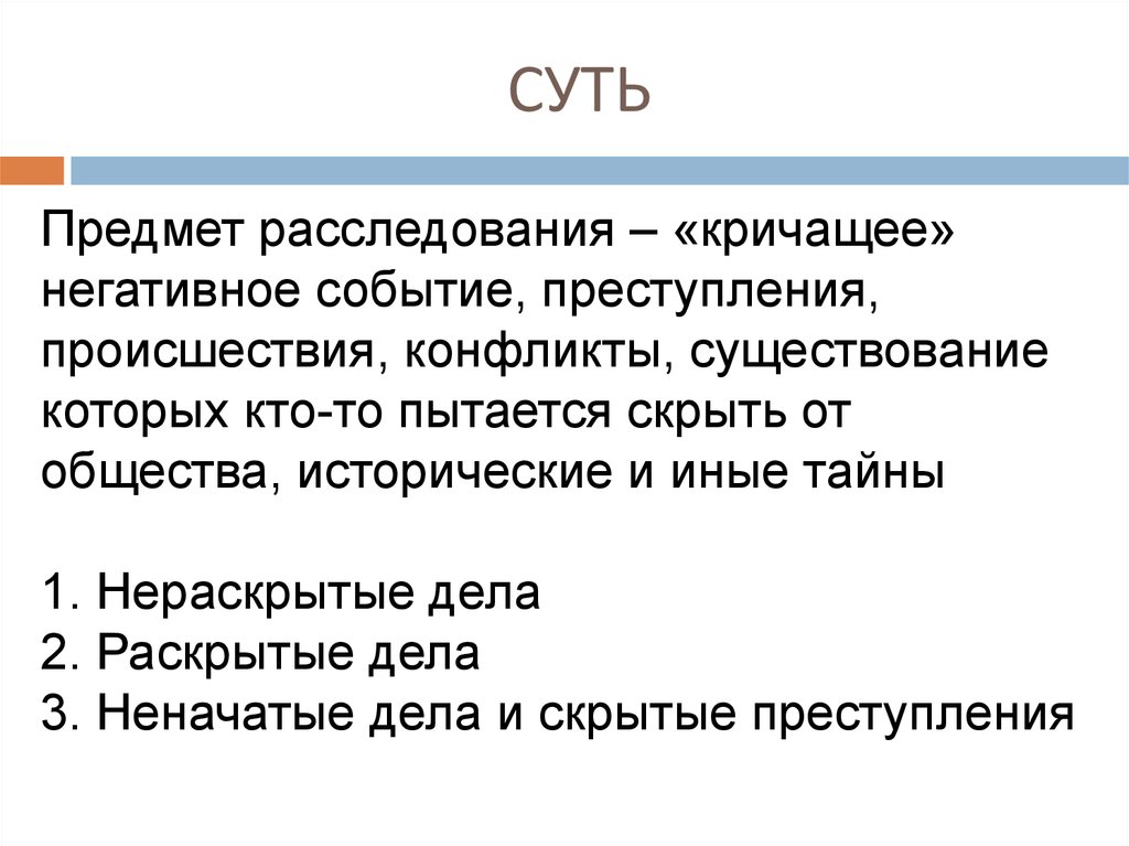 СУТЬПредмет расследования – «кричащее»