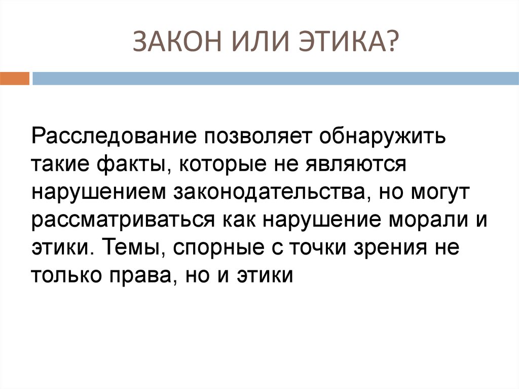 ЗАКОН ИЛИ ЭТИКА?Расследование позволяет обнаружить