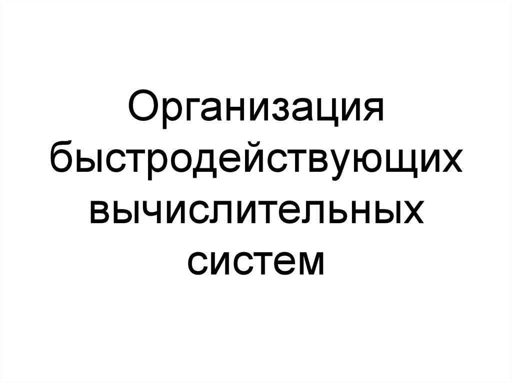 1. Организация быстродействующих вычислительных систем