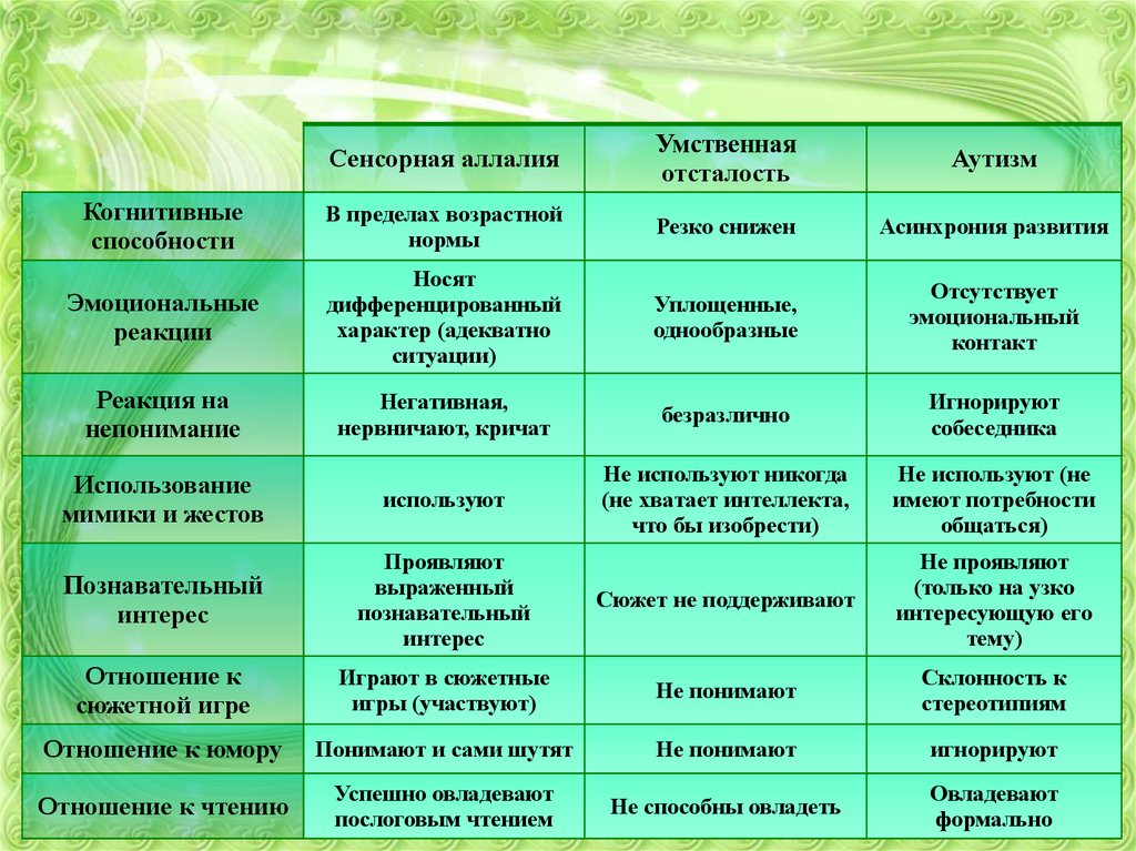 нарушается восприятие и понимание речи при сохранном слухе,что часто принимают за интеллектуальную недостаточность