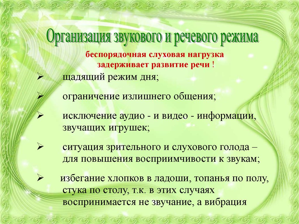 беспорядочная слуховая нагрузказадерживает развитие речи !