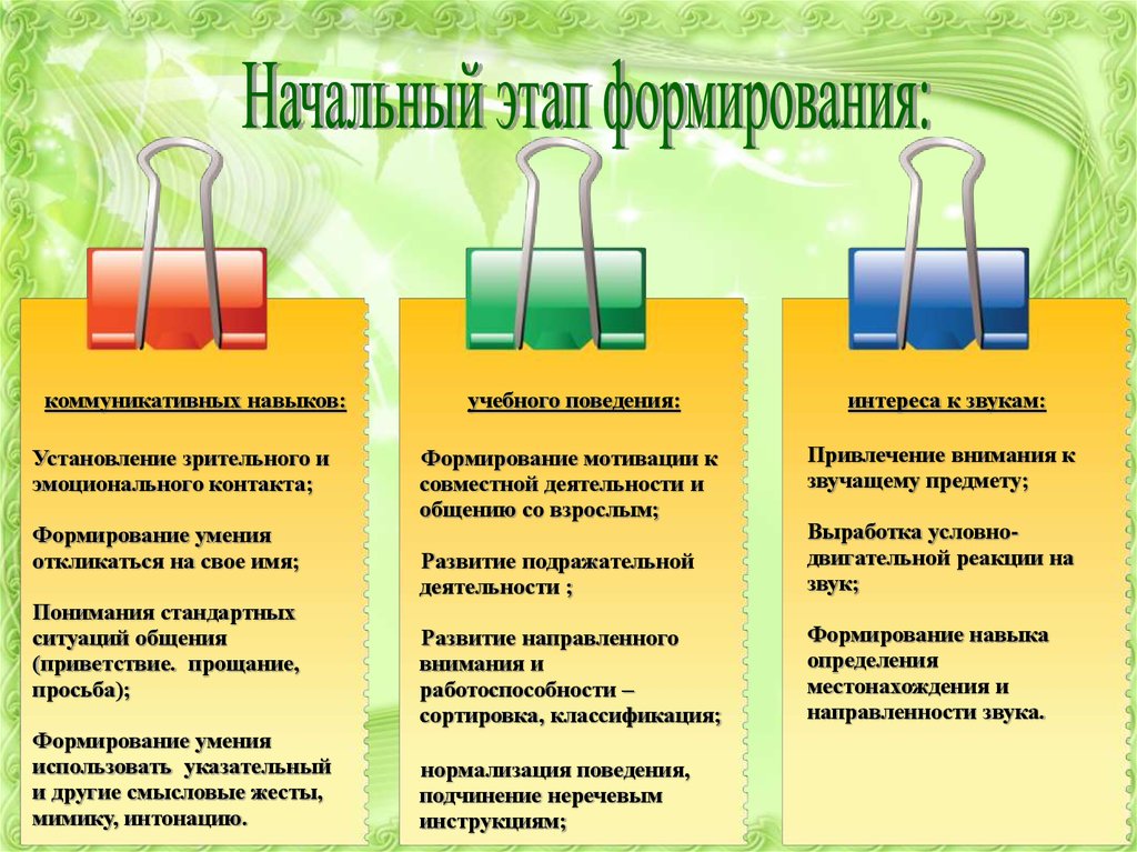 коммуникативных навыков:Установление зрительного и
