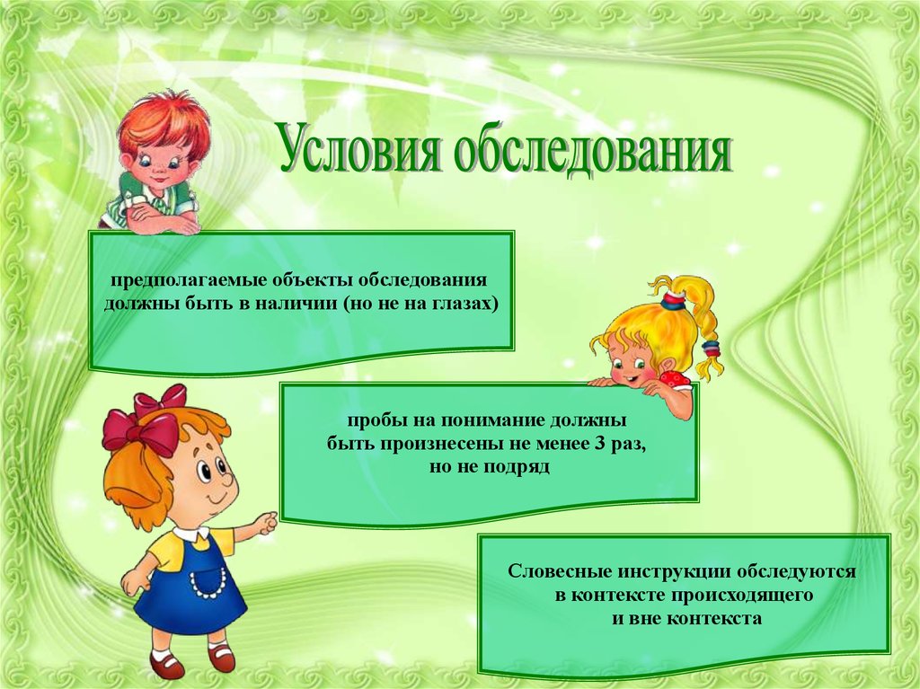 Словесные инструкции обследуются