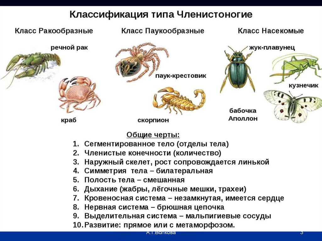 Тема 9. Тип ЧленистоногиеА.Г.Волкова