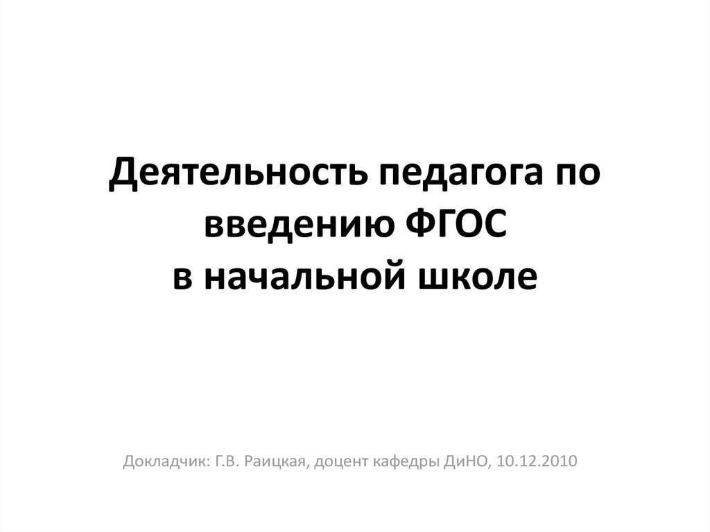 Докладчик: Г.В. Раицкая, доцент кафедры ДиНО, 10.12.20102. Деятельности педагога под заказ государства