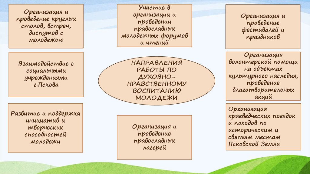 • Определение и создание эффективных путей и условий для формирования духовнонравственного воспитания молодежи г.Пскова на базе православно-краеведческих икультурно-исторических традиций России.