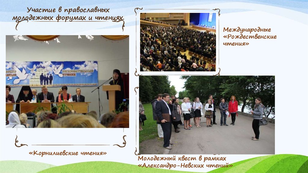 Участие в православныхмолодежных форумах и чтениях.