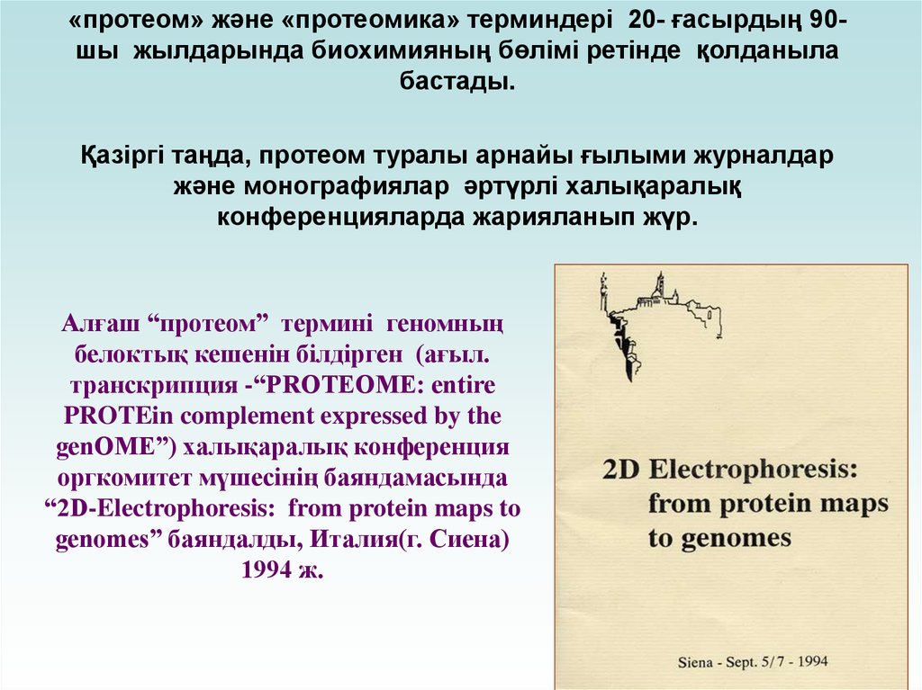 «протеом» және «протеомика» терминдері 20- ғасырдың 90шы жылдарында биохимияның бөлімі ретінде қолданылабастады.