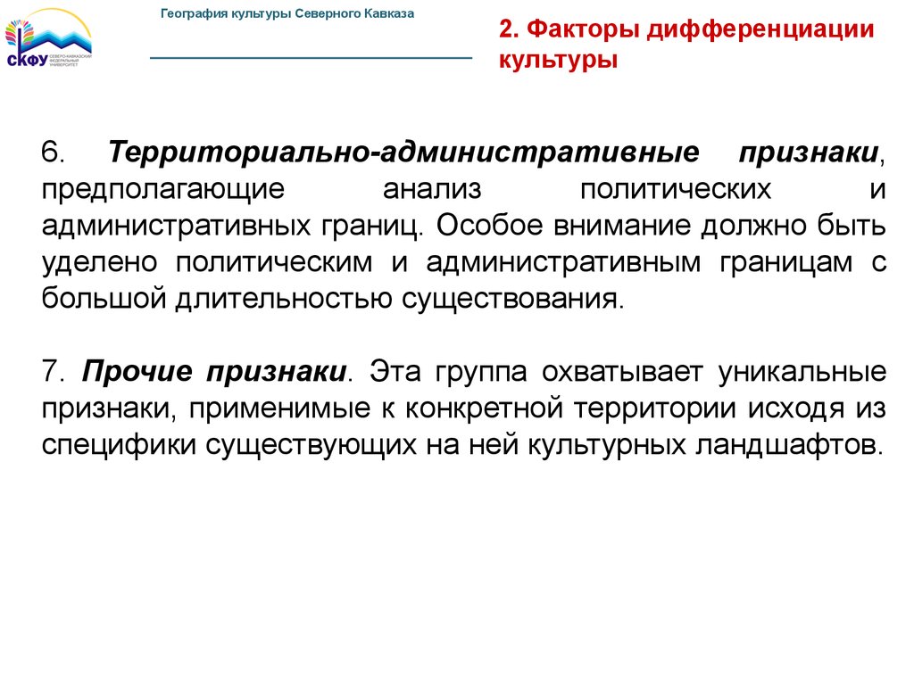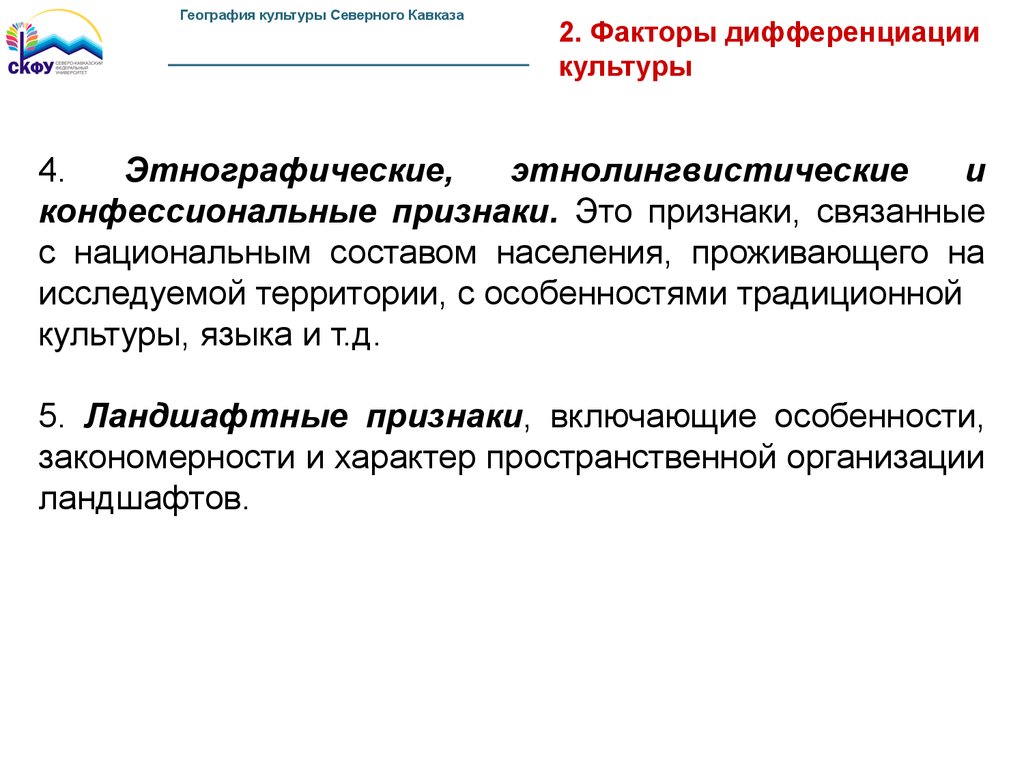 СЕВЕРО-КАВКАЗСКИЙ ФЕДЕРАЛЬНЫЙ УНИВЕРСИТЕТГеография культуры Северного