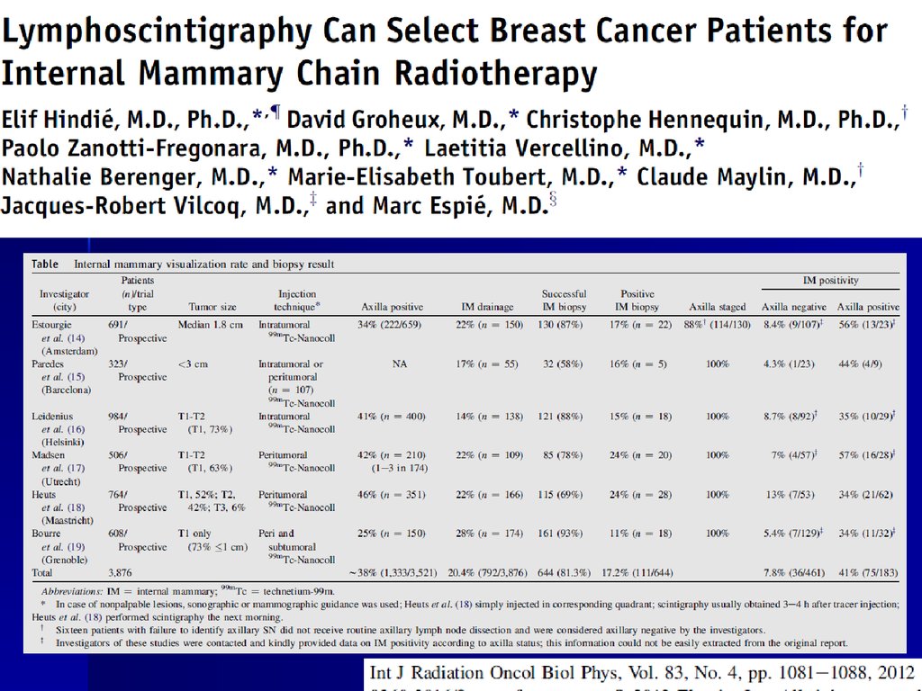 1. Визуализация сигнальных лимфоузлов - краеугольный камень в определении тактики лучевого лечения больных раком молочной железы