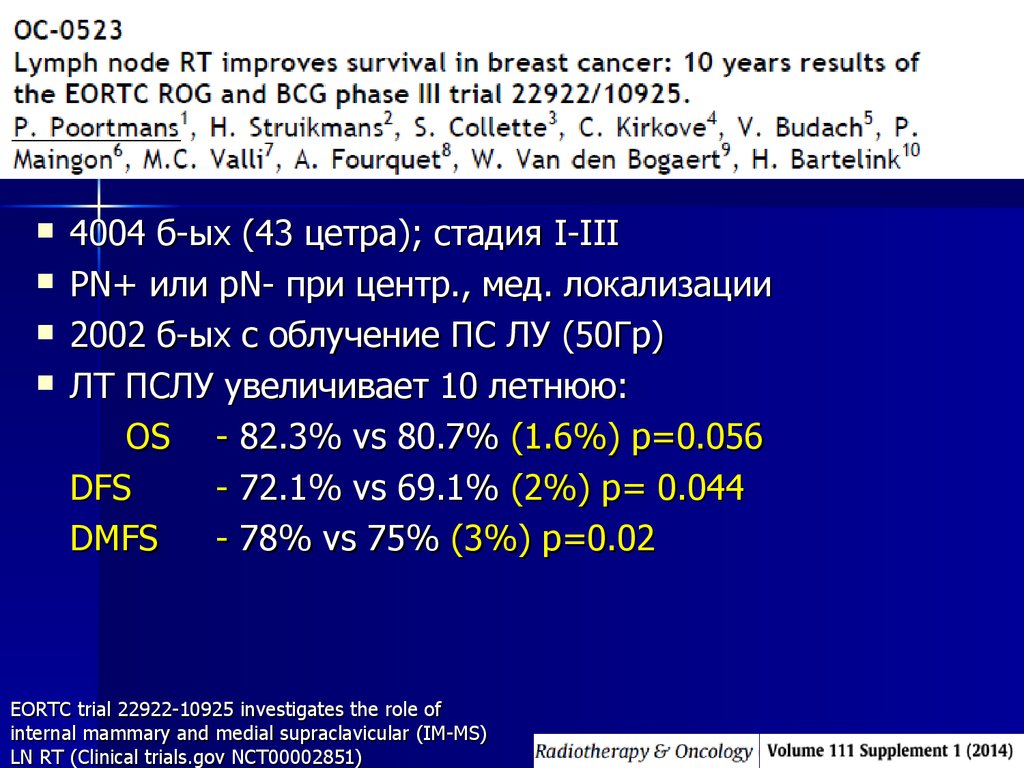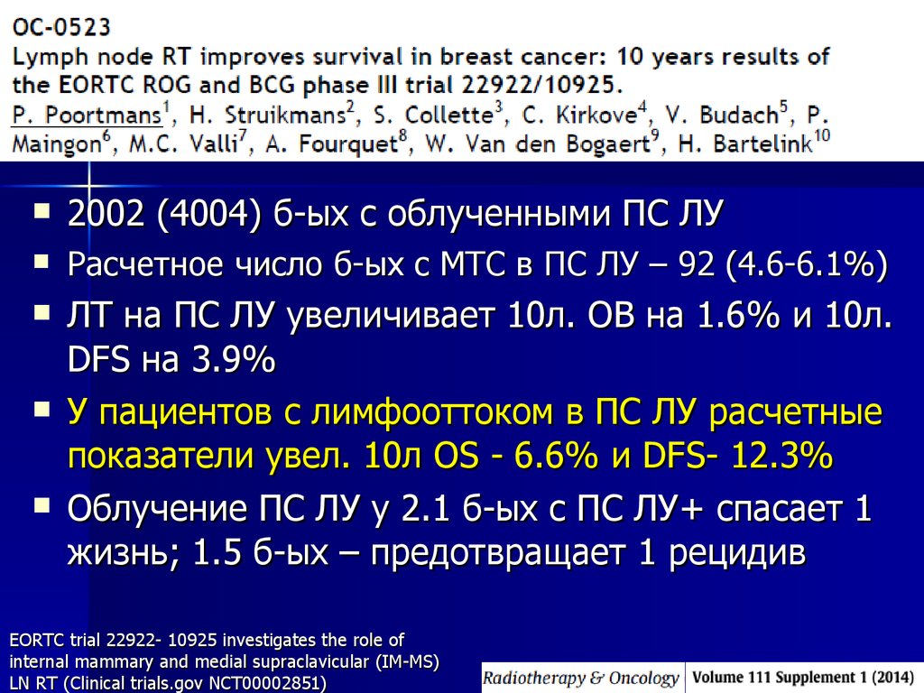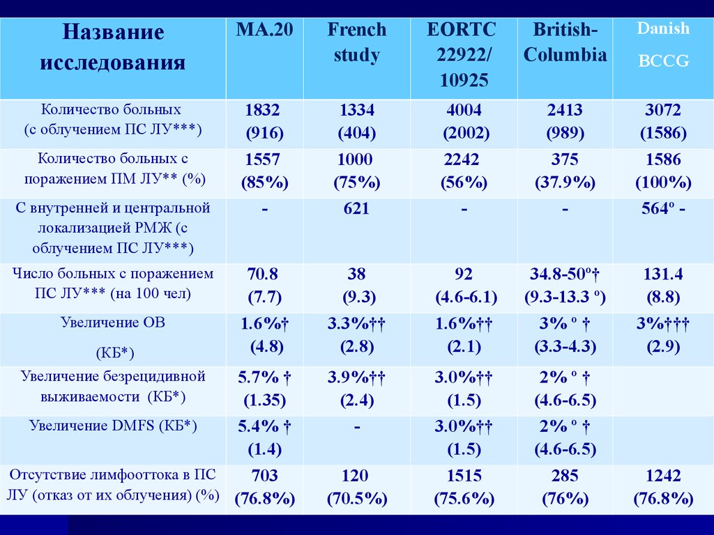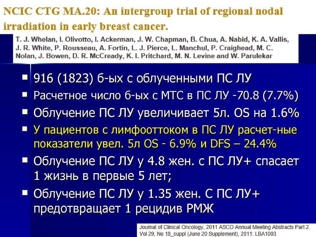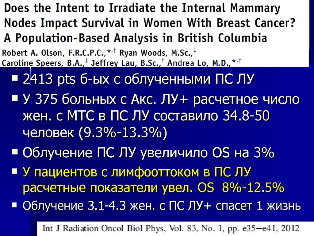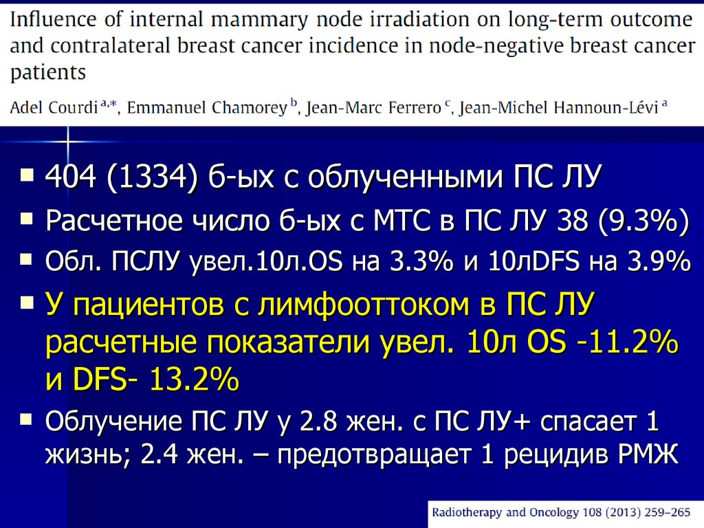 25. Влияние облучения парастернальных ЛУ на выживаемость больных РМЖ