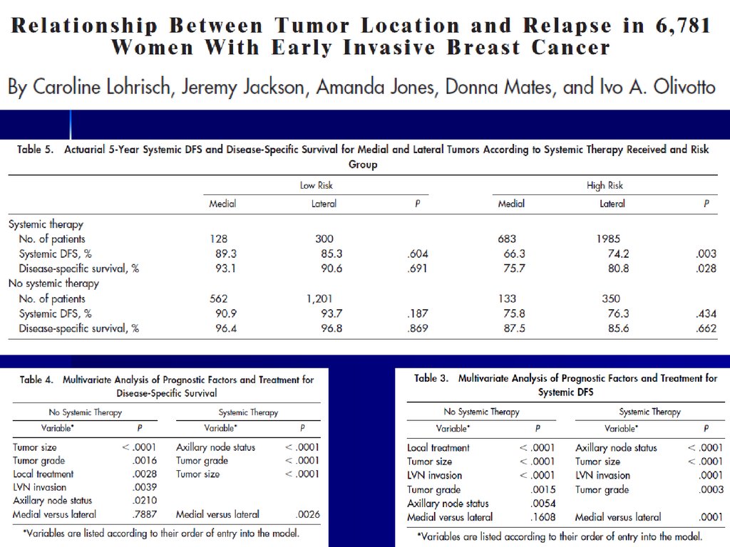 29. Показатели выживаемости в зависимости от локализации РМЖ