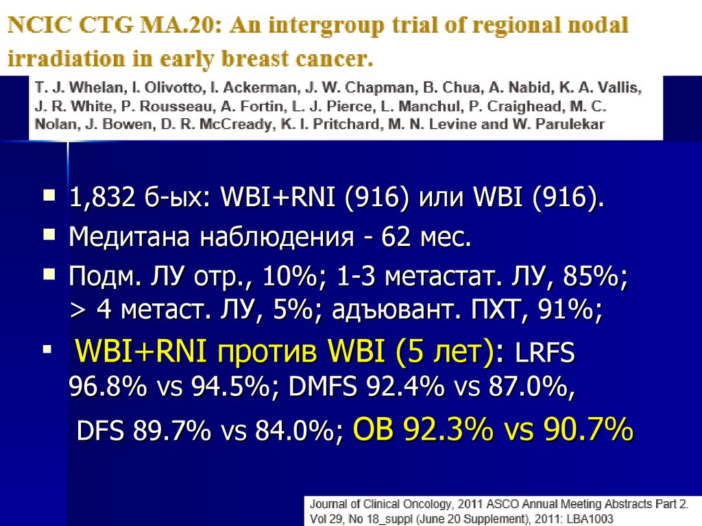 1,832 б-ых: WBI+RNI (916) или WBI (916).Медитана наблюдения - 62 мес.